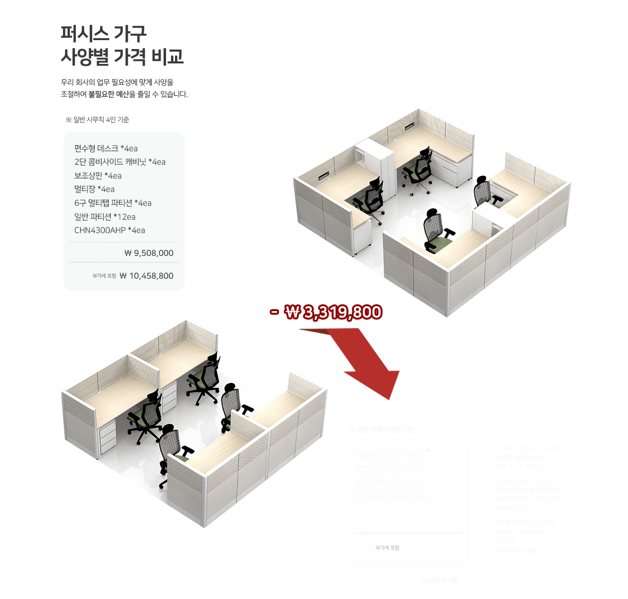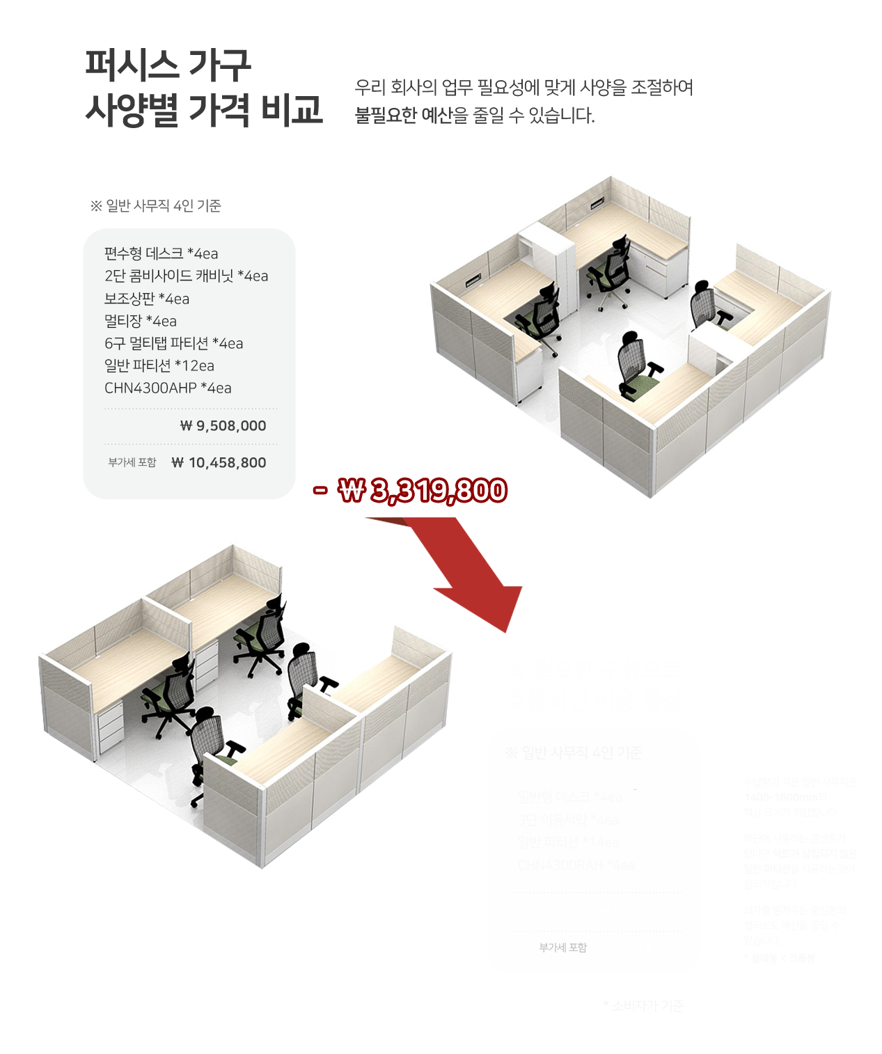 오픈형 캐비닛 + 도어 캐비닛 + 상판을 결합시킨 주문제작 제품