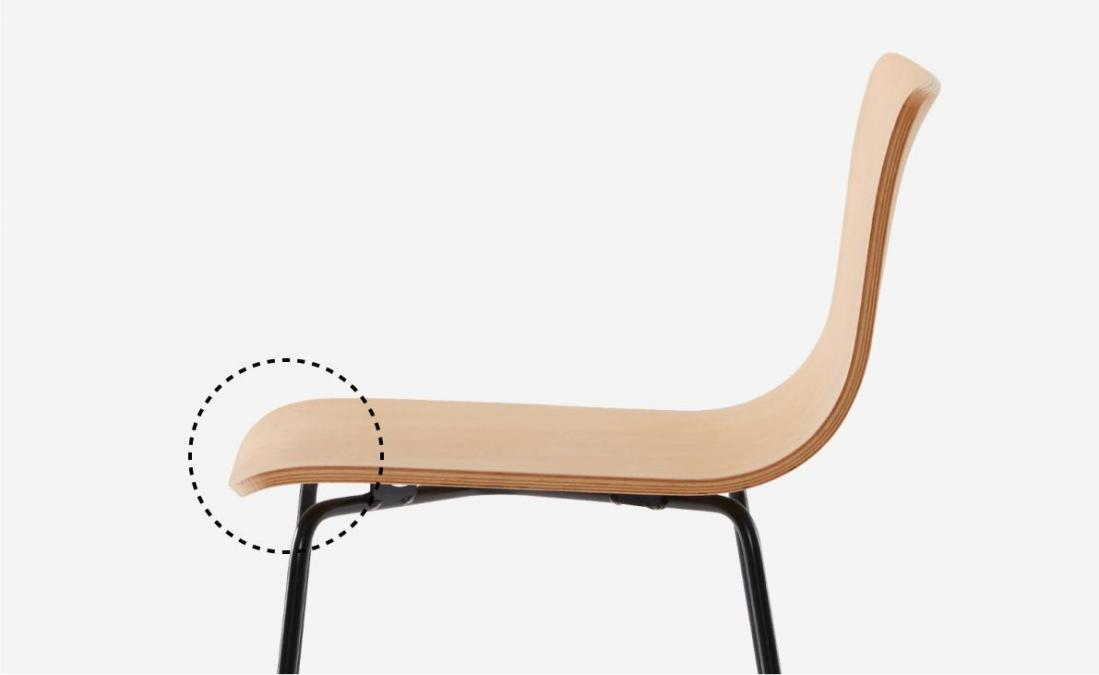| 견고하고 고급스러운 원목 등좌판을 이루고 있는 너도밤나무는 치밀하고 탄성이 뛰어나 견고한 사용감을 제공하며 고급스러운 나뭇결이 공간에 생기를 더해줍니다. | 글라이드 다리 끝 부분을 글라이드 처리로 바닥과의 마찰을 최소화하여 이동 시 소음 발생과 바닥 손상을 방지해줍니다. |