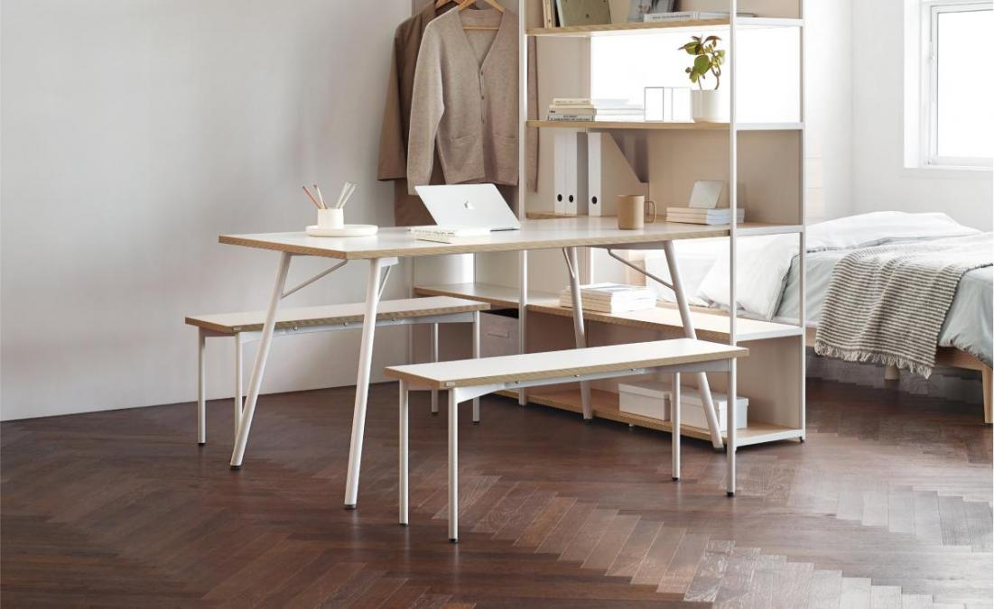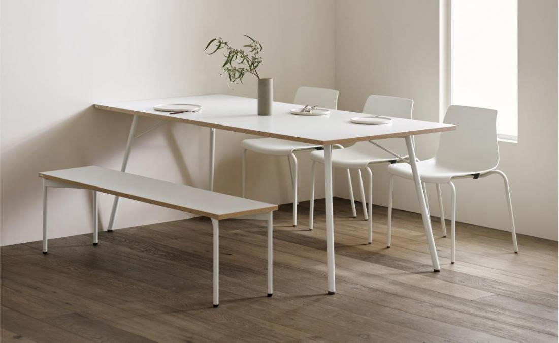 데스커 6인 테이블과 구성할 수 있는 3인 벤치 의자입니다.