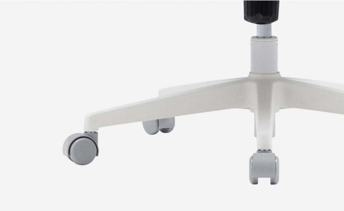 | 메쉬소재 등 좌판 등판 메쉬는 표면 감촉이 탁월하고 통기성이 우수합니다. 체열 분산이 쉽게 되어 쾌적함을 유지해주고, 탄력이 뛰어나 등을 탄탄하게 받쳐줍니다. | 나일론 바퀴 엔지니어링 플라스틱(PA6)를 사용하여 내구성과 이동성이 뛰어납니다. |