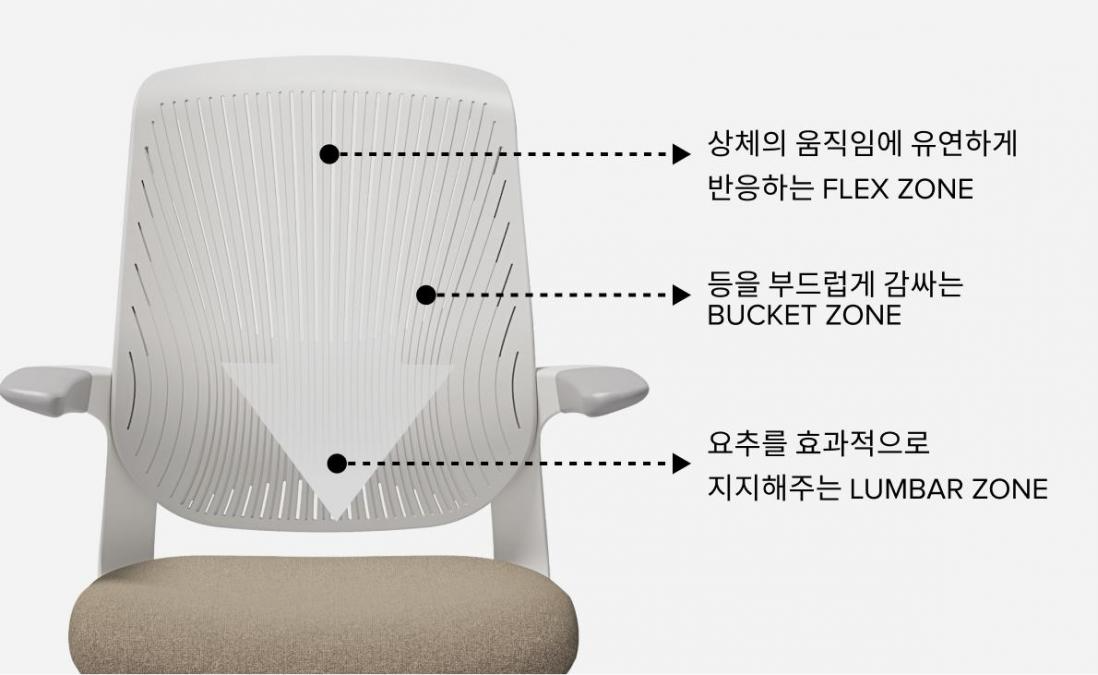 | 플렉스 등판 서로 다른 굵기와 길이로 길게 뻗은 플렉스 등판은 등을 부드럽게 감싸며 자연스럽게 밀착되어 미세한 움직임에도 효과적으로 지지해줍니다. | 좌판 스트림 라인 내부 프레임에 스트림 라인을 적용한 좌판은 엉덩이에 집중된 체압을 효과적으로 분산시켜 오래 앉아도 허리에 부담이 가지 않고 편안합니다. |