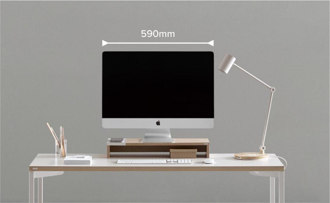 | 효율적인 공간활용 모니터 받침대 하단 공간을 활용하여, 데스크 위를 깔끔하게 정리할 수 있습니다. PC를 사용하지 않을 경우 키보드와 마우스를 모니터받침대 아래로 수납할 수 있어 공간을 효율적으로 사용할 수 있습니다. | 어떤 작업 환경에서도 최적화된 길이 노트북과 싱글 모니터를 사용하시는 분들에게 적합합니다. WIDE 590mm의 컴팩트한 사이즈로 작은 책상의 공간도 효율적으로 사용할 수 있습니다. |