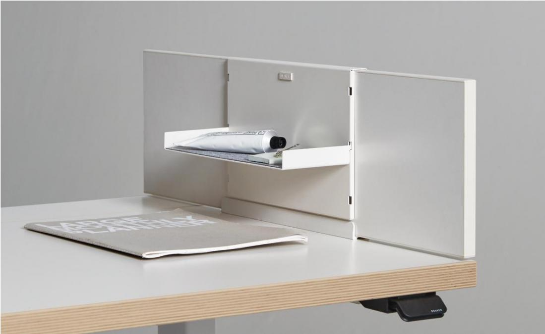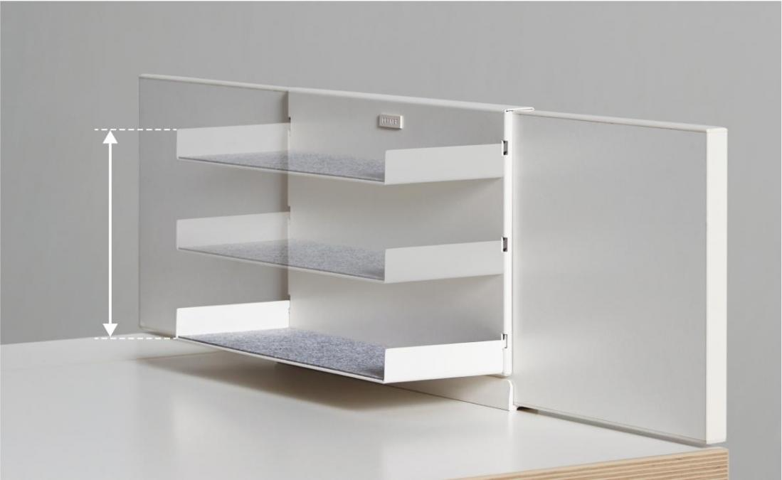 | 스마트한 수납과 메모 보드로 활용 손이 닿는 곳에 필요한 물건들을 수납하여 편하게 사용할 수 있으며 자석이 붙는 스틸 소재를 적용하여 간단한 메모나 계획표 등을 붙여둘 수 있습니다. | 이동 선반으로 원하는 높이로 사용 선반에 3개의 홀이 있어 원하는 위치로 이동이 가능합니다. 선반을 위 쪽으로 거치하면 하부 공간을 여유롭게 사용할 수 있습니다. |