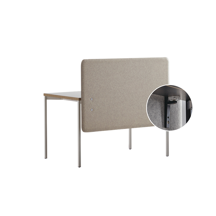 | 프라이버시 보호 시선을 가리면서 커뮤니케이션은 가능하도록 책상 상단면으로부터 약 40cm까지 올라오고, 하부는 개인 프라이버시 보호를 위해 책상 하단면으로부터 약 33cm까지 내려오도록 설계되었습니다. (상판 두께 28mm 기준) | |