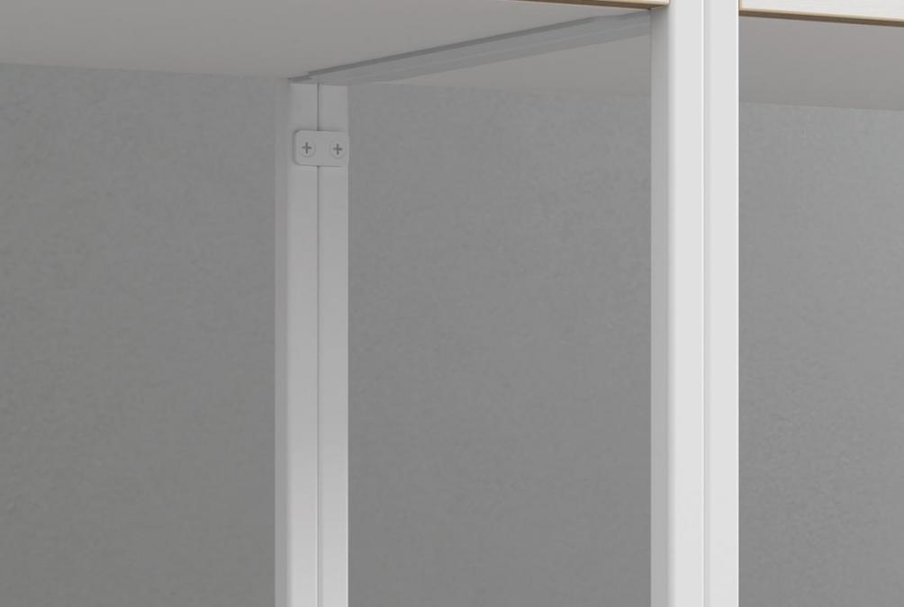 철제 책장/행거를 여러 개 배치 시, 커넥터를 사용하여 제품의 수직, 수평을 깔끔하게 맞추고 더욱 안전하게 사용하실 수 있습니다.