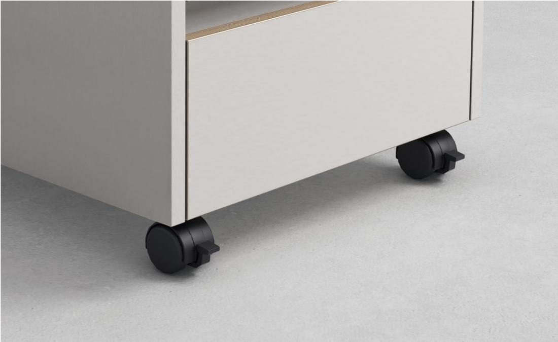 | FULL-EXTENSION 레일 FULL-EXTENSION 고급 레일을 사용하여 서랍을 부드럽게 열 수 있을 뿐 아니라 속서랍이 끝까지 인출되어 전체 공간을 효율적으로 사용할 수 있습니다. | 브레이크 캐스터 캐스터 4개 모두에 브레이크 기능이 있어 자유로운 이동과 고정이 모두 가능합니다. |