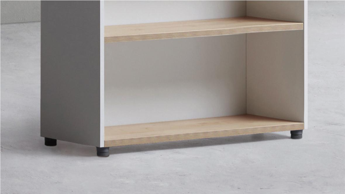 | 효율적인 수납 기존 목제책장보다 10cm 더 깊어져 큰 서류나 짐도 수납할 수 있습니다. | 수평을 맞출 수 있는 글라이드 글라이드를 돌려 높이를 15mm까지 조절할 수 있습니다. 바닥면이 고르지 않아도 수평을 맞춰 사용할 수 있습니다. |
