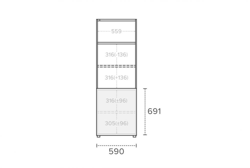 | 10cm 더 깊어진 책장 하부장의 깊이가 더 깊어져 더 다양한 물건을 수납할 수 있습니다. 부피가 큰 가방 등 지저분한 물건을 넣어 정리할 수 있습니다. | 이동선반 하부장 내부 선반과 책장의 하단 선반은 각 9.6cm와 13.6cm 위로 이동 가능하여 수납 제품의 크기에 따라 선반을 이동할 수 있습니다. |