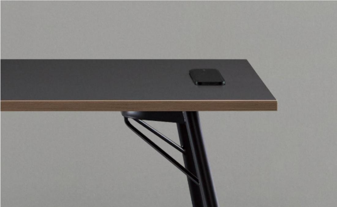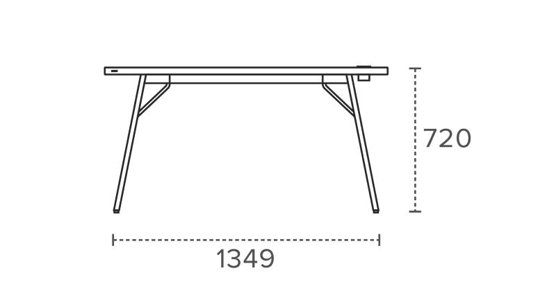 | 견고한 하부 프레임 사선 형태의 스틸 프레임을 이중으로 보강하여, 안정적으로 상판의 무게를 지지해주며 상판 하부의 보강프레임이 테이블의 휨을 방지해줍니다. 천연 분체 도료로 도장한 스틸 다리는 스크래치에 강하며, 칠이 쉽게 벗겨지지 않습니다. | |