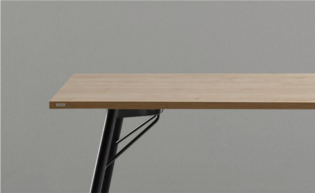 | 견고한 하부 프레임 사선 형태의 스틸 프레임을 이중으로 보강하여, 안정적으로 상판의 무게를 지지해주며 상판 하부의 보강프레임이 테이블의 휨을 방지해줍니다. 천연 분체 도료로 도장한 스틸 다리는 스크래치에 강하며, 칠이 쉽게 벗겨지지 않습니다. | |