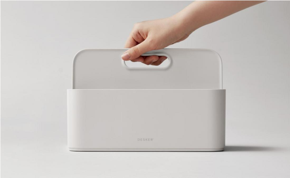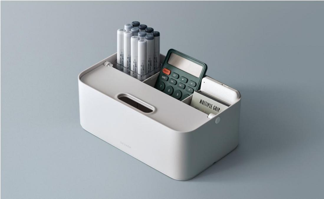 데스커 툴박스는 커버를 닫은 채로 물건들을 깔끔하게 보관할 수 있는 수납함이자