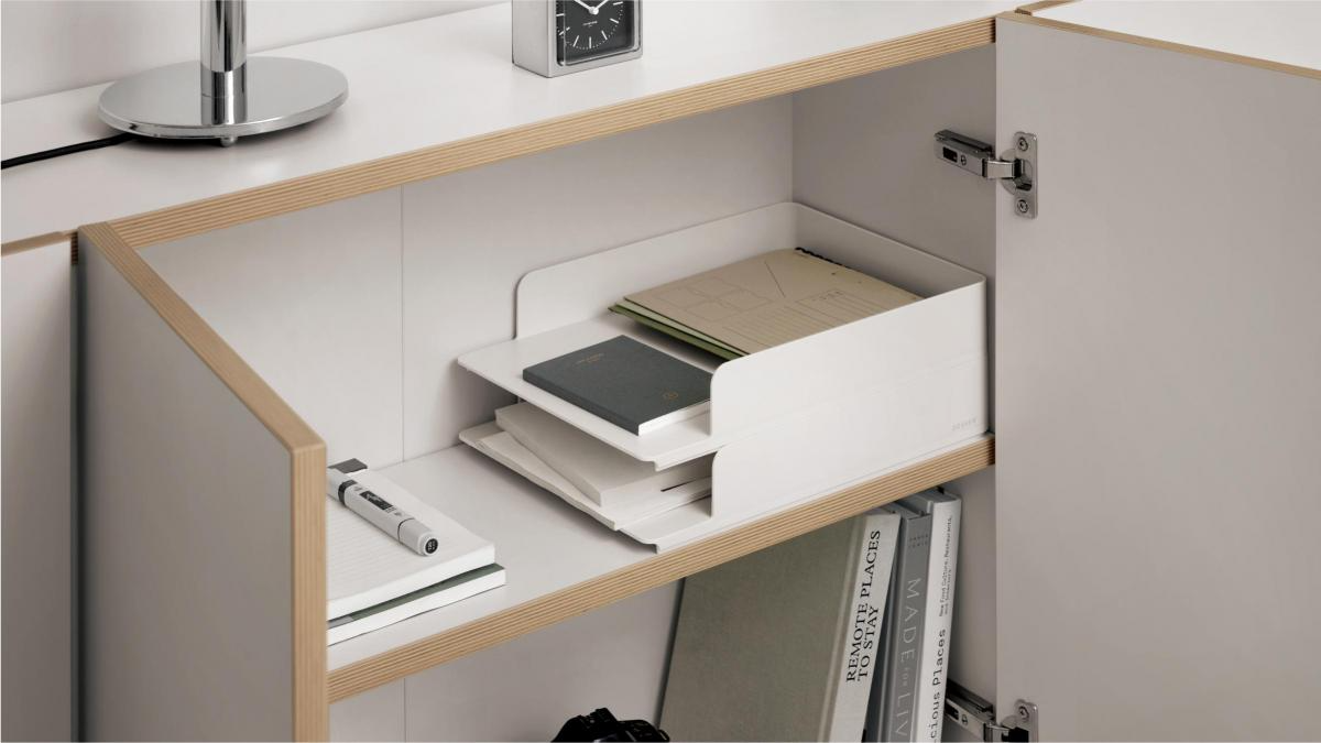 | 적층 수납 흔들림 없이 적층할 수 있도록 디자인되어 사용자에 수납 니즈에 맞춰 여러 개를 쌓아서 사용할 수 있습니다. ※ 최대 5개까지 권장 | 심플한 오픈형 디자인 지류를 보다 빠르고 손쉽게 정리할 수 있는 오픈형 디자인으로 사용성이 우수합니다. |
