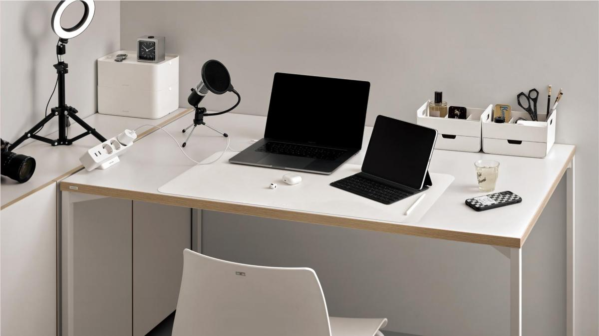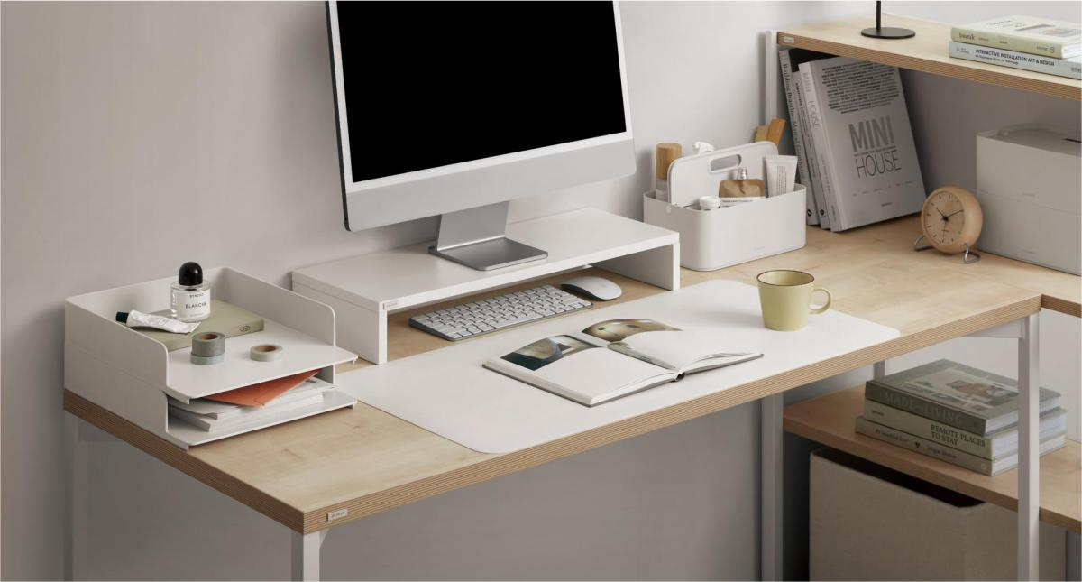 | 부드러운 가죽과 밀림 없는 논슬립 소재 부드러운 인조가죽 소재를 사용하였으며 일상 생활의 가벼운 방수가 가능합니다. 뒷면은 특수 코팅된 논슬립 원단으로 되어 있어 사용 시 매트가 밀리지 않아 다양한 작업에 불편함 없이 사용하실 수 있습니다. | 책상 톤과 잘 어울리는 컬러 데스커 책상(화이트, 빈티지블랙)과 잘 어울리는 컬러로, 스타일을 지키면서도 책상을 보호할 수 있습니다. |
