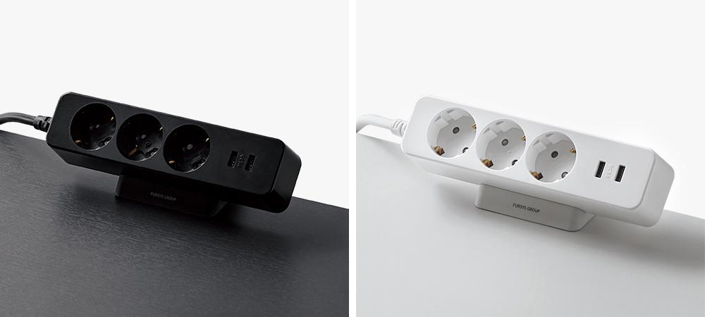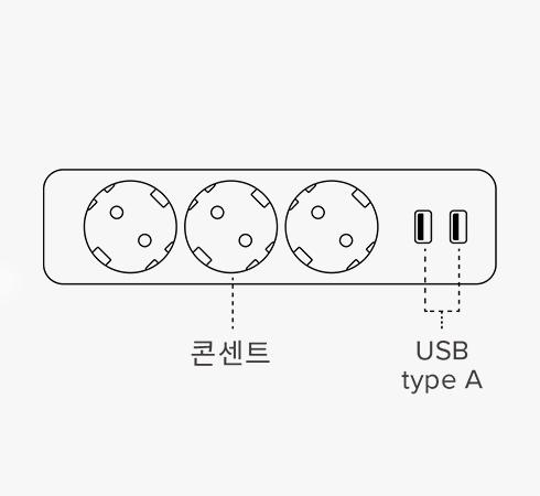 | 데스크 위 스마트한 충전 사용하는 IT 기기의 이동이 잦은 경우, 벽 또는 바닥의 멀티탭에서 충전선을 꽂거나 뺄 필요 없이 데스크 위에서 손쉽게 충전/연결/해제가 가능합니다. AC 콘센트 3구, USB 2포트(A타입)의 제품으로 다양한 기기를 충전할 수 있습니다. | |
