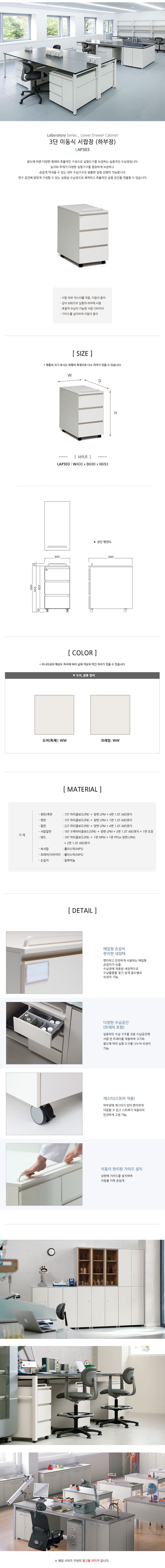[LAP303] 퍼시스 Lab 실험실 LAP303 3단 서랍장 하부장 폭:400